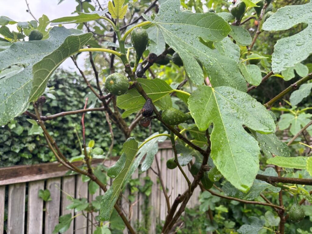 Hvis du har en figen, Ficus carica, frit udplantet i haven vil den næsten samtidig med at den har vist sig med alle sine blade også vide de frugter, der modnes om efteråret. Sidste efterår satte fignen måske også små nye frugter som desværre ikke kan nå at udvikle sig. De kan blive siddende på planten til næste år, men som man kan skimte er de blevet små, rynkne og nærmest sorte. Når du rører dem falder de let af. Men glæd dig til årets høst.